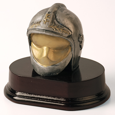 Diese aus Resine* hergestellte Feuerwehrtrophäe in Silber sowie Gold ist besonders optisch ansprechend und besitzt eine attraktive reflektierende Metall-Oberflächenveredlung. Eine detailgetreue Darstellung eines Feuerwehrhelms mit Feuerwehrhandschuhen. Die Feuerwehrtrophäe befindet sich auf einem braunen ovalen Sockel und hat eine Gesamthöhe von 12 Zentimeter. Durch Ihre Widmung auf einem Gravurschild am Sockel werden diese Trophäen zu einer dauerhaften persönlichen Auszeichnung! * Resine - Ein Material gemischt aus Kunstharzen.