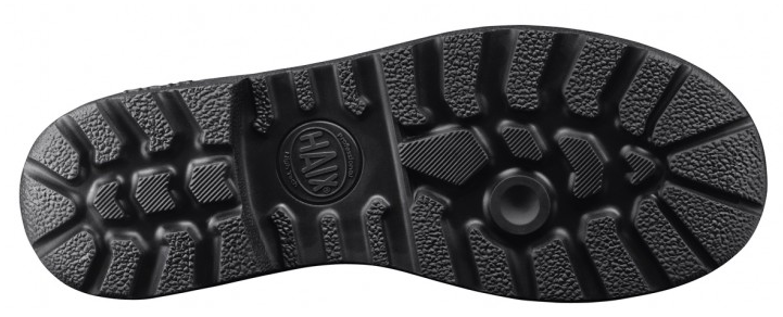 Ausgeschäumte und hoch abriebfeste Gummischalensohle mit einem Strassen-/Geländeprofil, hoher Temperaturbeständigkeit und gutem Abrollkomfort. Leiterstegprofilierung mit ausgeprägter Absatzfront. Öl- und benzinbeständig, nicht kreidend. Gemäß EN ISO 20345:2011 / EN 15090:2012