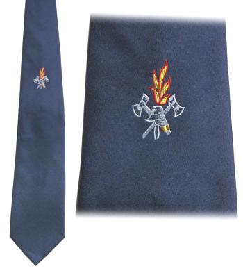 Krawatte mit Feuerwehrhelm, gekreuzte Beile, Flammen