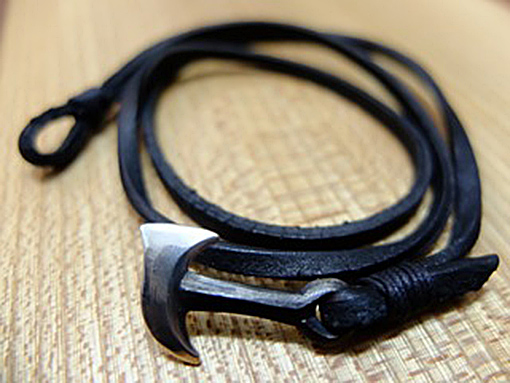 Die Axt ist aus Sterling Silber 925 (Gewicht 4,5 Gramm). Die Oberfläche des Griffs ist mit oxydiert und die Schneide poliert. Aus einem speziellen Goldschmiede Wachs ist mit der Säge die grobe Form einer Axt ausgesägt und mit den verschiedensten Feilen zur Endform gebracht worden. Das Wachsmodell wird abgegossen in Silber und die Oberfläche mit Oxydbeize geschwärzt.