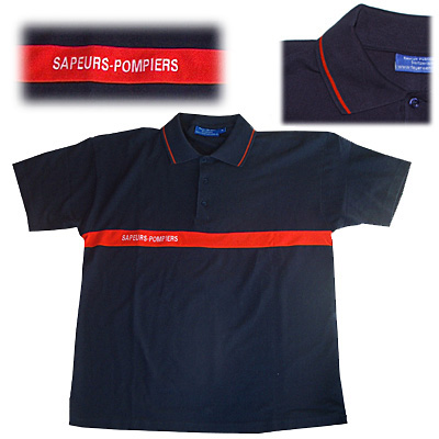 Polo-Shirt, Dunkelblau mit rotem Streifen eingenäht, SAPEURS-POMPIERS gestickt, 100% Baumwolle