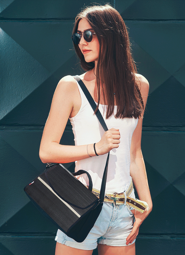 Die interessante Trapez-Silhouette bildet einen aufregenden Kontrast zur klassischen Form und macht die Handtasche wunderbar edel und sportlich zugleich. Der hochwertig aufbereitete Einsatz-Feuerwehrschlauch verleiht Phil einen lässigen, urbanen Charme und macht jedes Stück zum Unikat. Somit eignet sich die Handtasche für’s Shopping, aber auch für schicke Anlässe.
