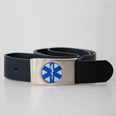 Star of Life Gürtel schwarz, Leder mit Metallschnalle