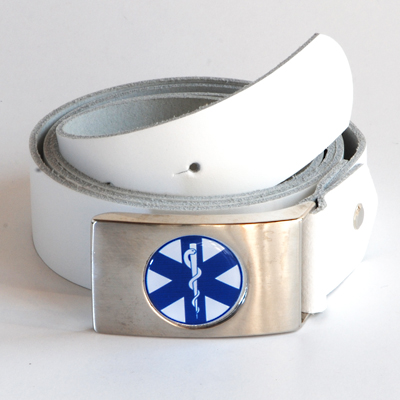 Star of Life Gürtel weiss, Leder mit Metallschnalle