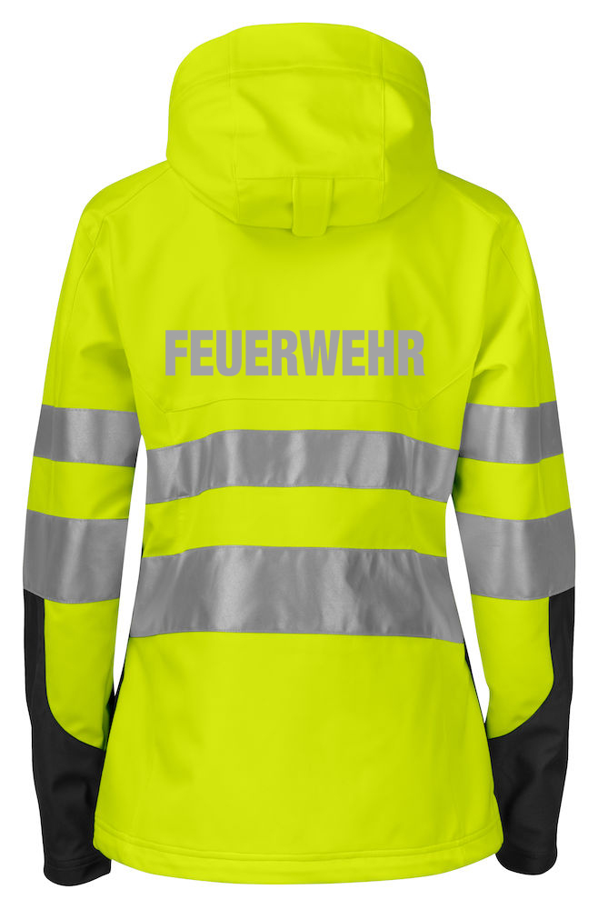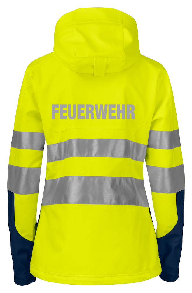 Softshell Damenjacke EN ISO20471 Klasse 3/2 Beschriftung refl. FEUERWEHR gross auf Rücken