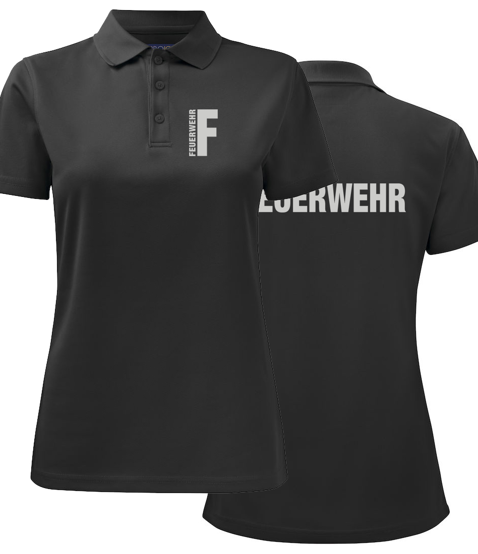 Funktions Polo Piqué Ladies Beschriftung refl. FEUERWEHR klein auf Brust und gross auf Rücken