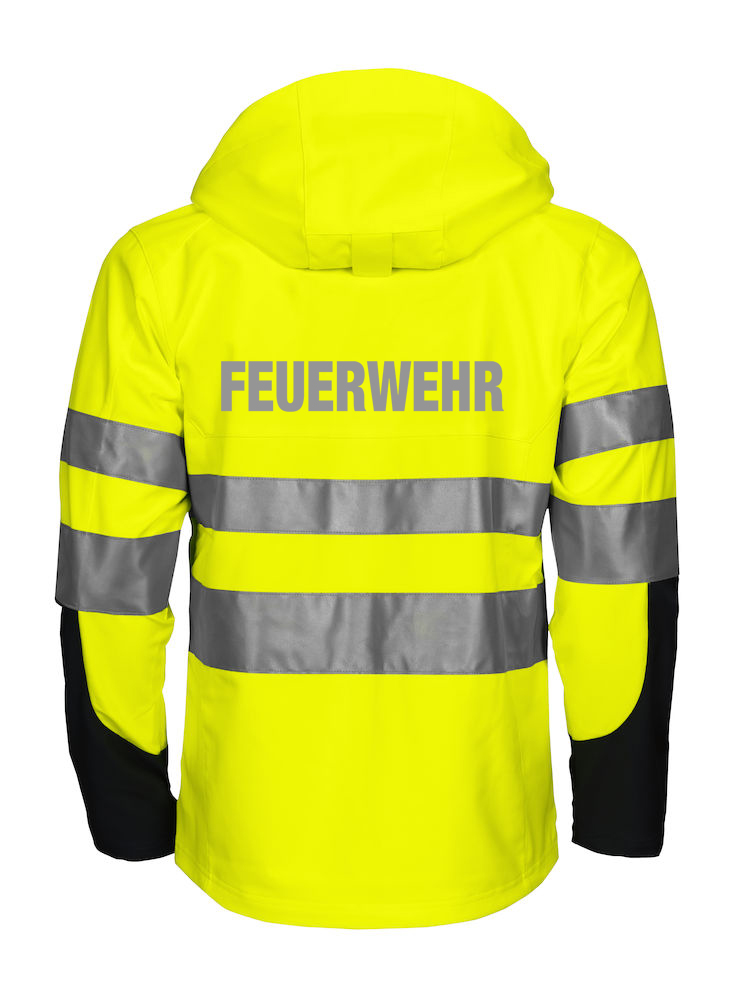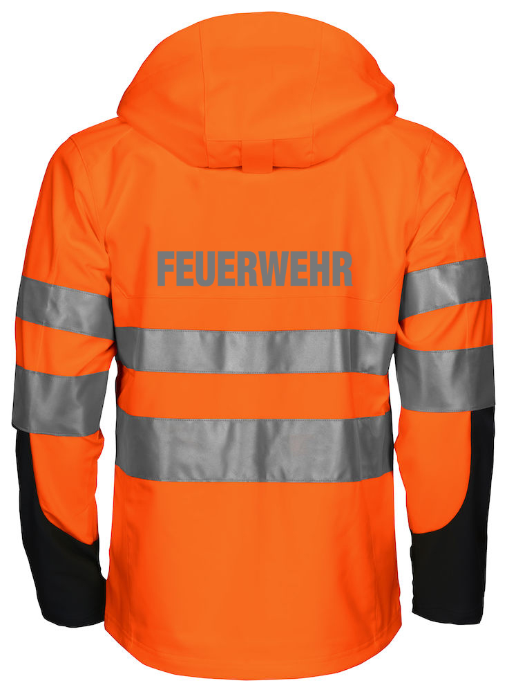 Funktionnelle Softshell-Jacke EN ISO 20471 Klasse 3/2 Beschriftung refl. FEUERWEHR gross auf Rücken
