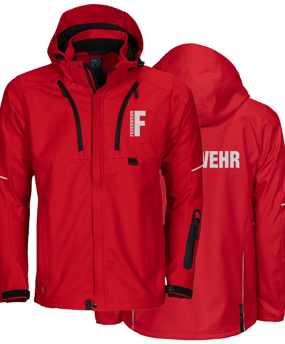 Softshell-Jacke Beschriftung refl. FEUERWEHR klein auf Brust und gross auf Rücken