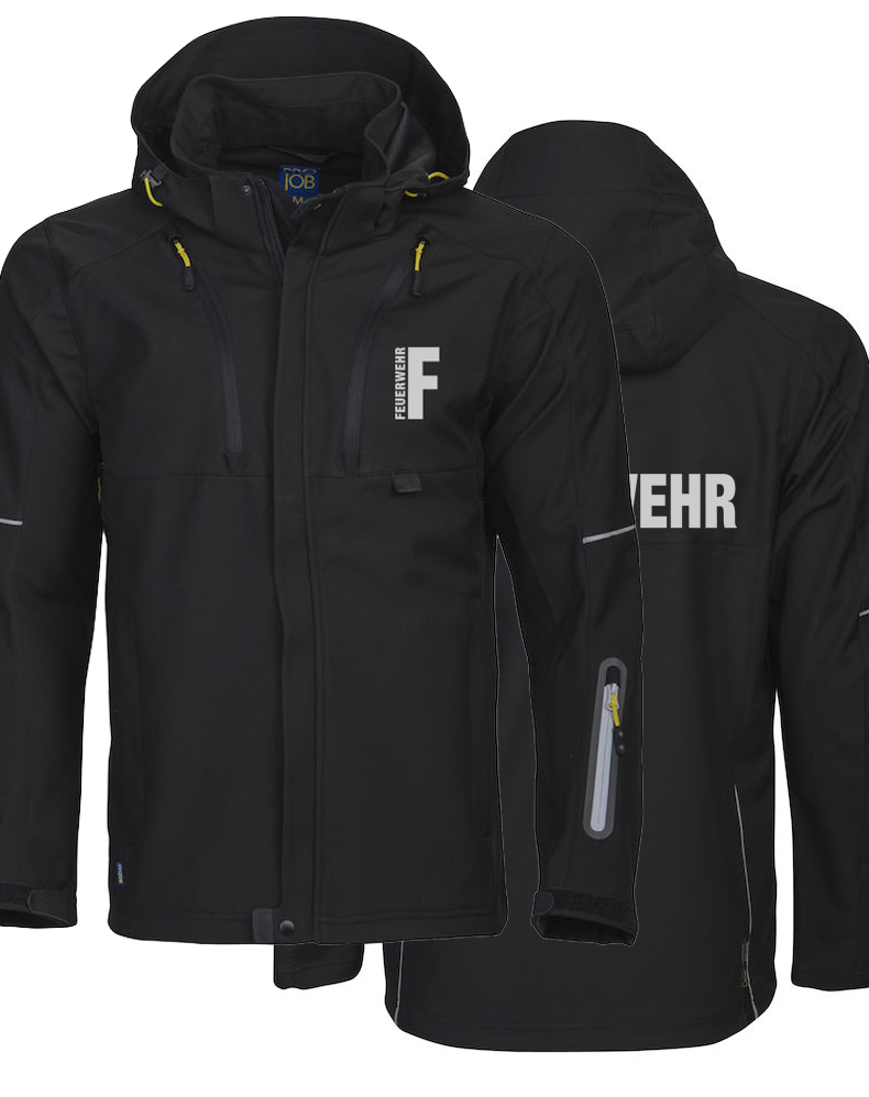 Softshell-Jacke Beschriftung refl. FEUERWEHR klein auf Brust und gross auf Rücken