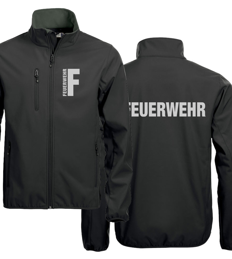 Softshell-Jacke Basic Beschriftung refl. FEUERWEHR klein auf Brust und gross auf Rücken