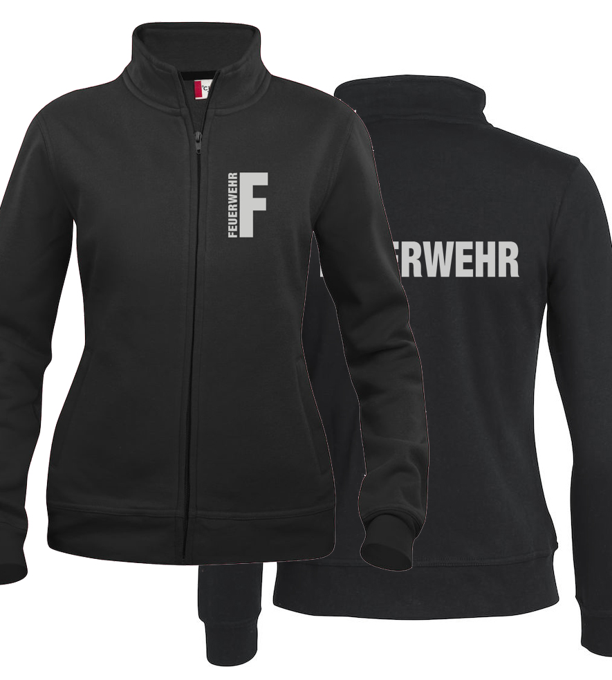 Sweatjacke Basic Cardigan Ladies Beschriftung refl. FEUERWEHR klein auf Brust und gross auf Rücken