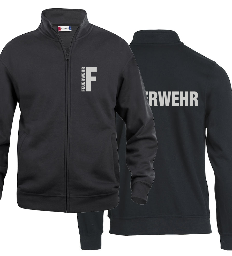 Sweatjacke Basic Cardigan Beschriftung refl. FEUERWEHR klein auf Brust und gross auf Rücken
