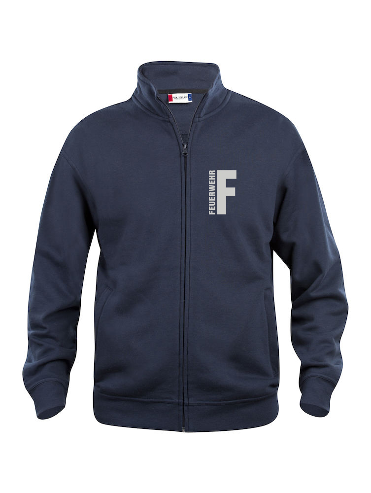 Sweatjacke Basic Cardigan Beschriftung refl. FEUERWEHR klein auf Brust
