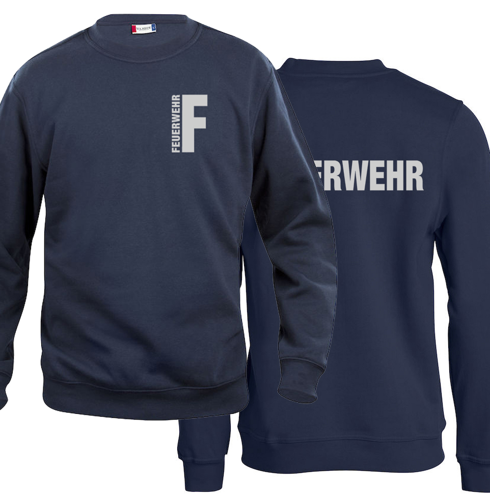 Sweat-Shirt Basic Beschriftung refl. FEUERWEHR klein auf Brust und gross auf Rücken