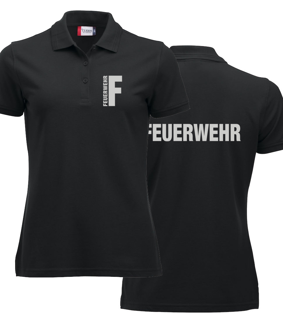 Polo-Shirt Manhattan Ladies Beschriftung refl. FEUERWEHR klein auf Brust und gross auf Rücken