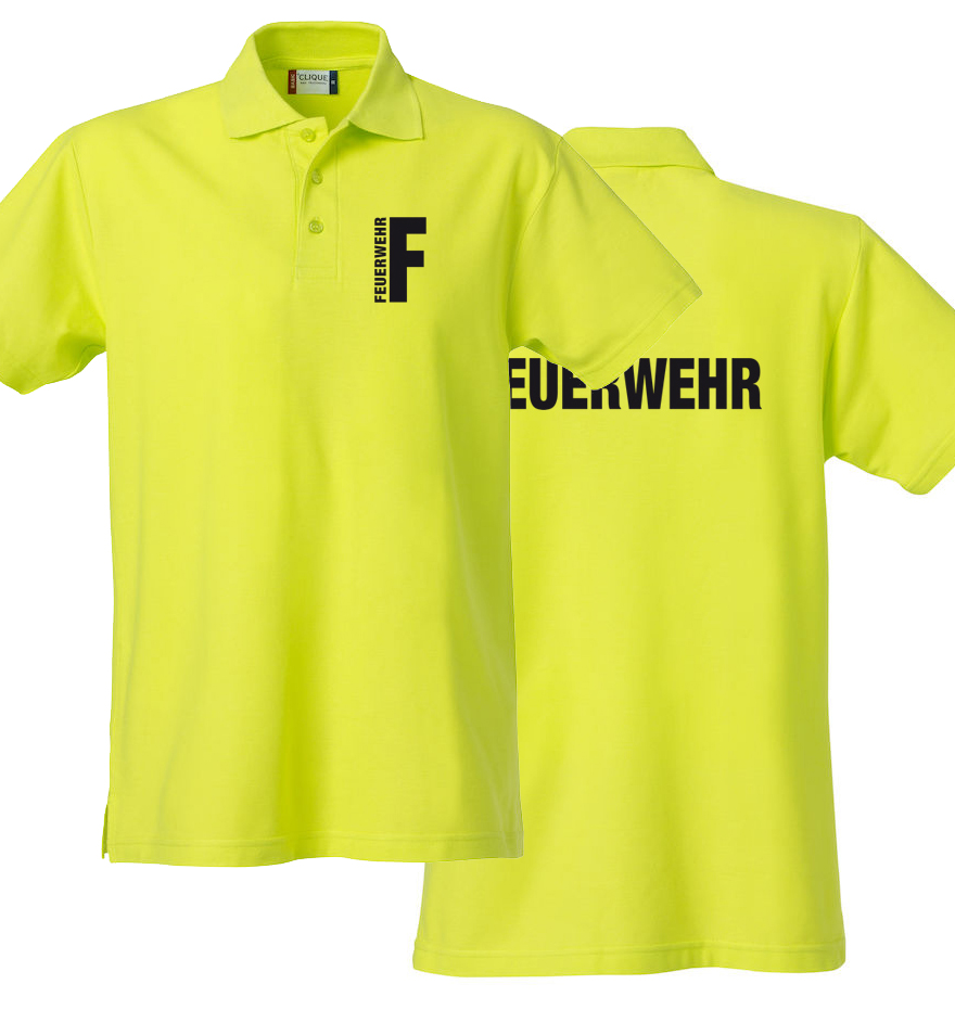 Polo-Shirt Basic Beschriftung schwarz FEUERWEHR klein auf Brust und gross auf Rücken