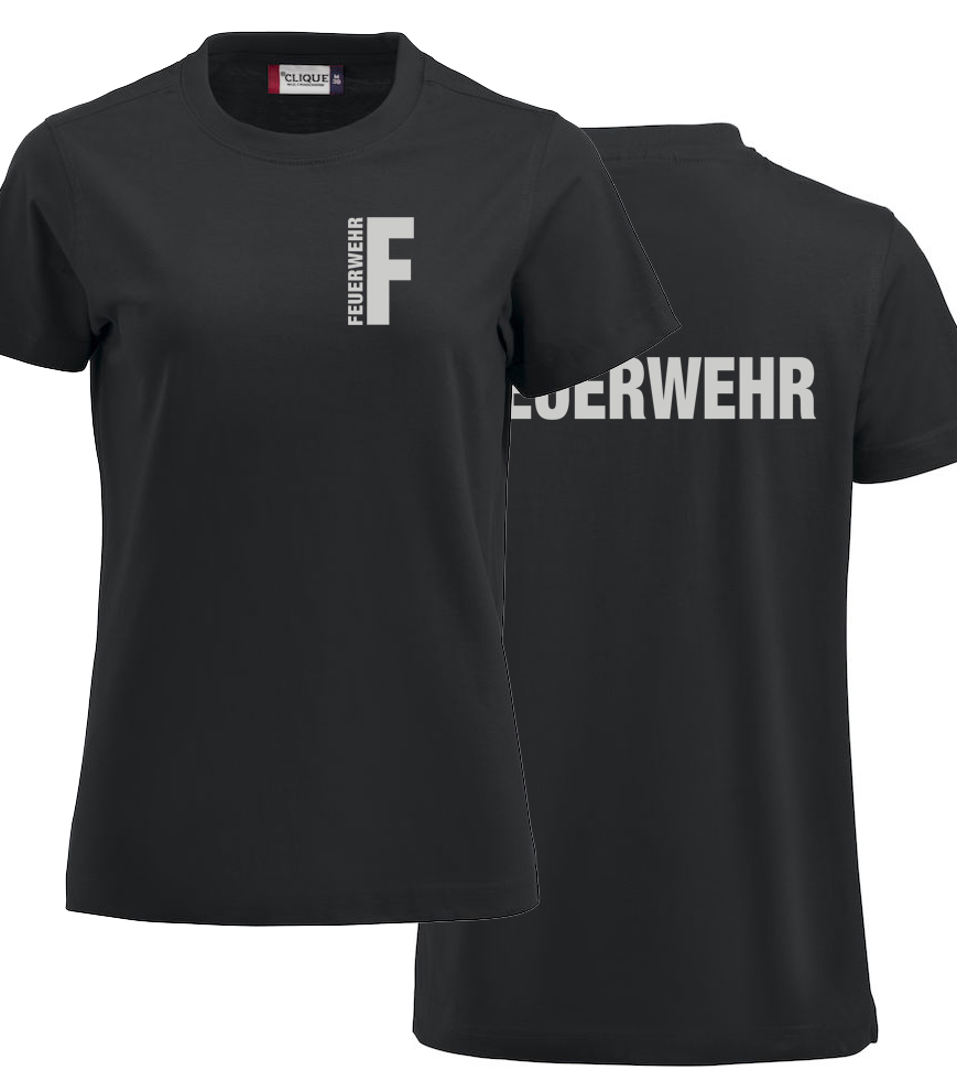 T-Shirt Premium T Ladies Beschriftung refl. FEUERWEHR klein auf Brust und gross auf Rücken