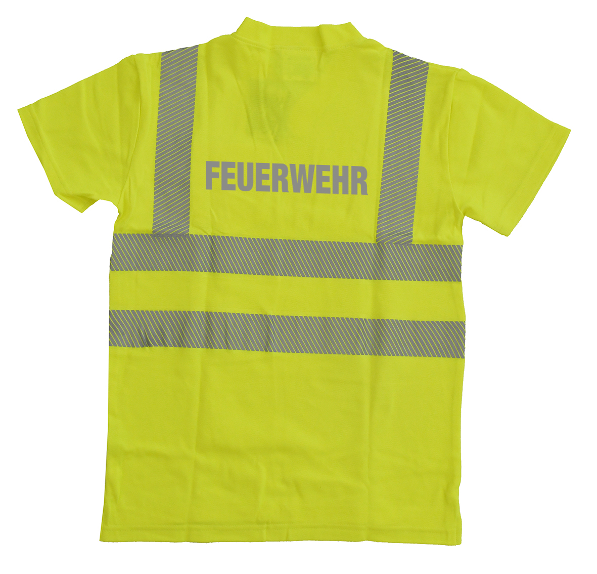 T-Shirt mit V-Ausschnitt ISO 20471 Klasse 2 Beschriftung refl. FEUERWEHR gross auf Rücken