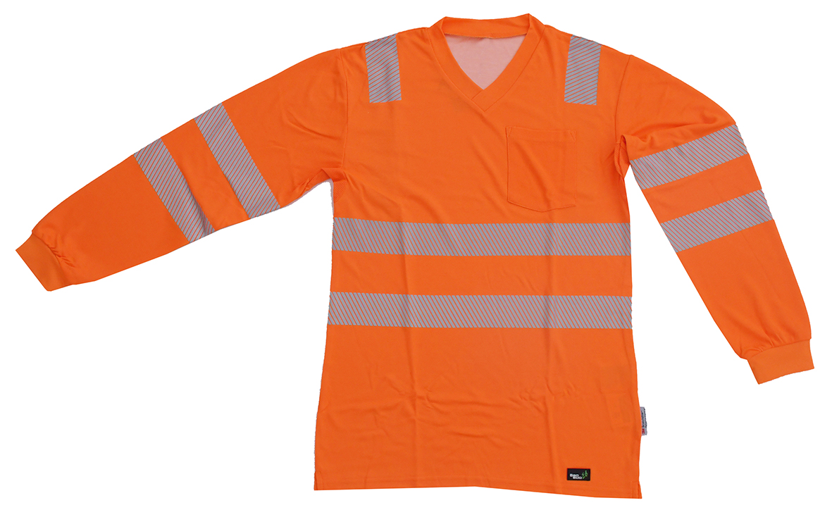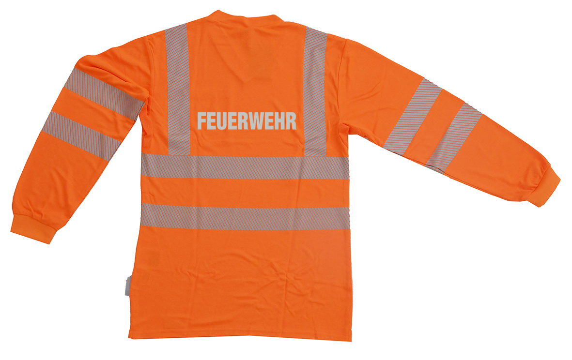 V-Neck Langarm T-Shirt ISO 20471 Klasse 2 Beschriftung refl. FEUERWEHR gross auf Rücken