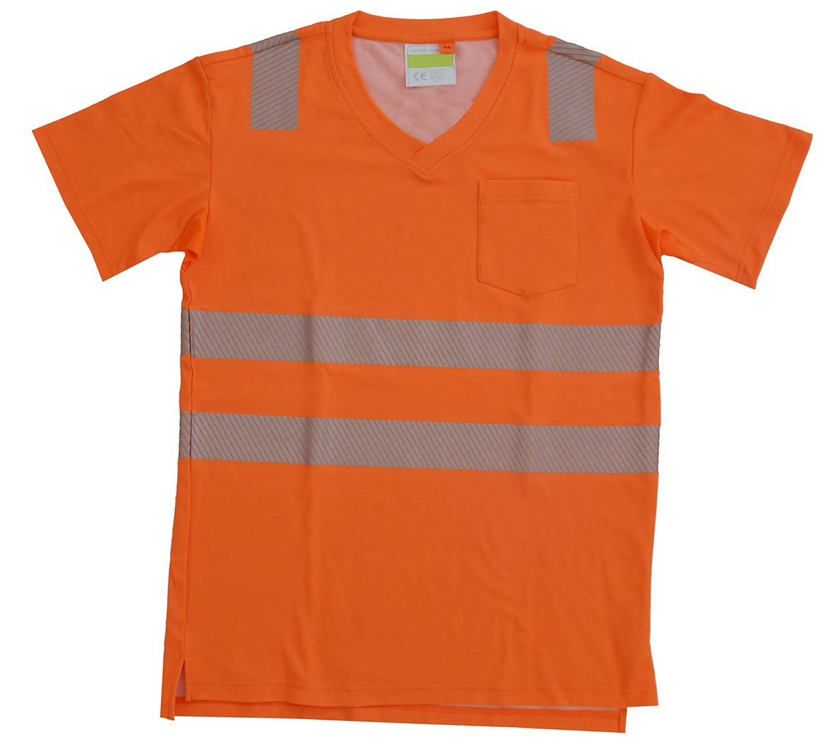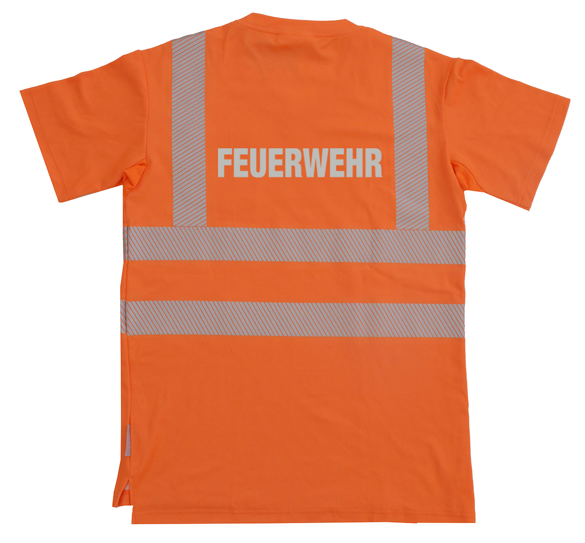 T-Shirt mit V-Ausschnitt ISO 20471 Klasse 2 Beschriftung refl. FEUERWEHR gross auf Rücken