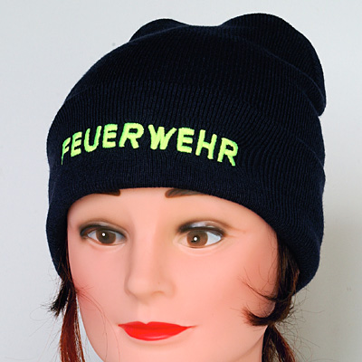 Wollmütze FEUERWEHR in lemon bestickt, Farbe marine