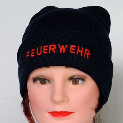 Wollmütze FEUERWEHR in rot bestickt, Farbe marine