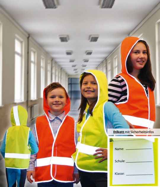 Kinderwarnweste mit Hoodie, Neon oder Orange